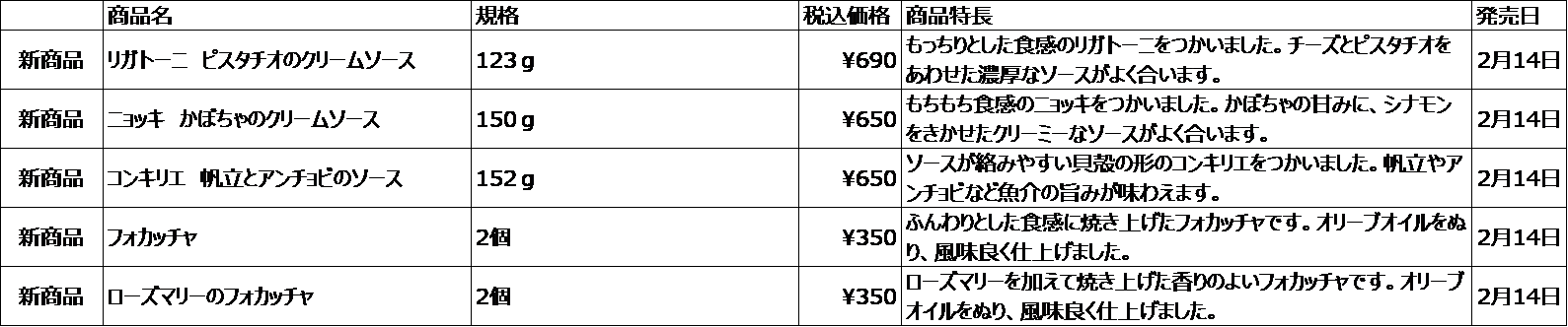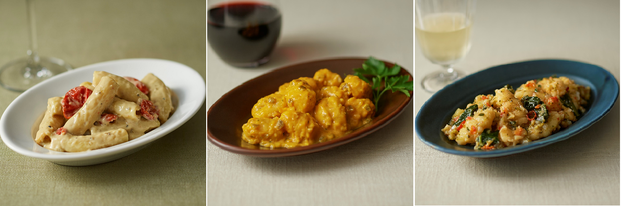 素材の色味や風味を出しやすいという冷凍食品の特長を生かし、「リガトーニ ピスタチオクリームソース」は2種類のチーズとピスタチオを合わせた濃厚な味わい、「ニョッキ かぼちゃのクリームソース」はかぼちゃの甘みにシナモンを効かせたクリーミーな味、「コンキリエ 帆立とアンチョビのソース」は帆立やアンチョビに刻んだトマトとケールを合わせた魚介の旨みと彩りを楽しめる商品に仕上げています。飲み物や他のメニューと合わせて、少しずつ味わって楽しめる商品です。