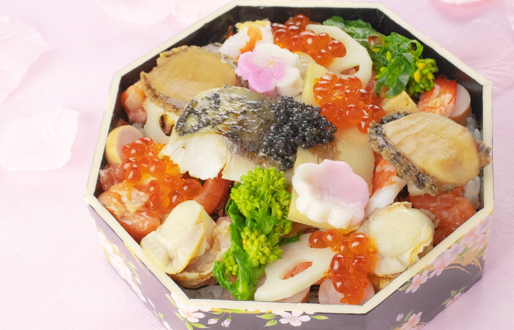 ひな祭りのお祝いに、活の彩り豊かなちらし寿司はいかがでしょうか。