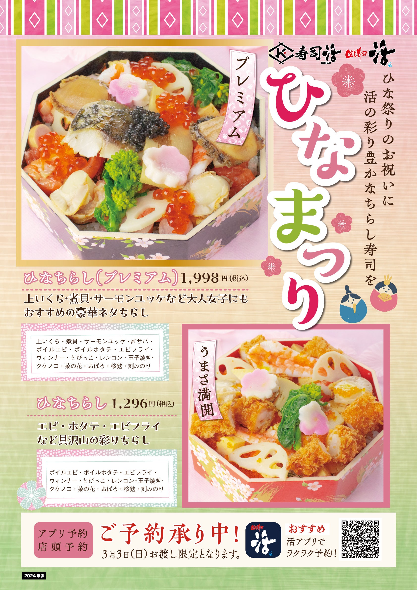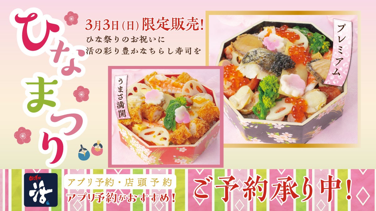 「回し寿司活/寿司活」は、春の訪れを彩るひな祭りに合わせ、特別なメニューをご用意いたしました。