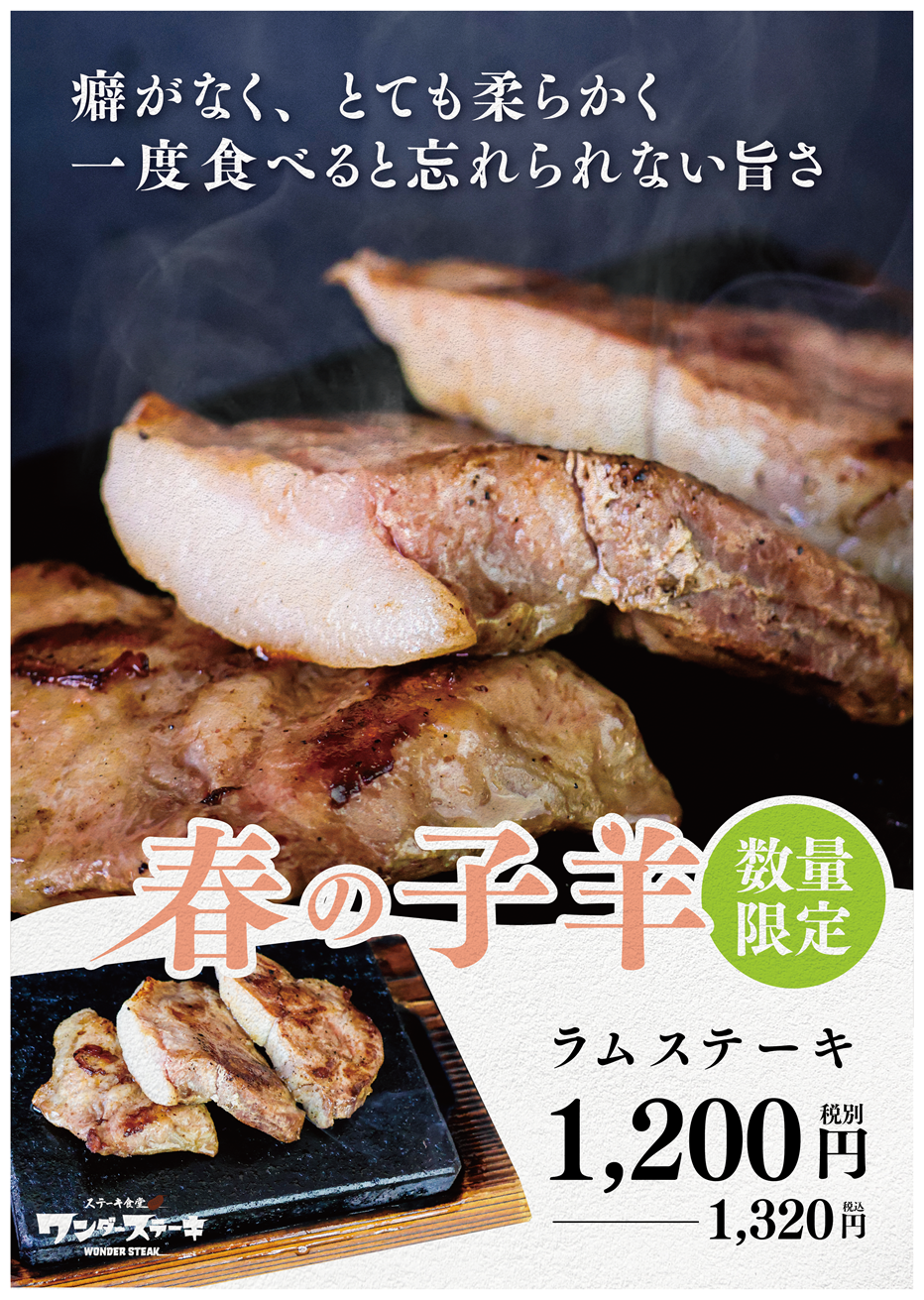 そこで、本物のフワフワに柔らかな良質のラムステーキ(春の仔羊)を少しで楽しんで頂くために、限定1600食ではありますが、提供することに成功致しました。