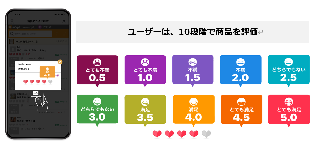 <CODEユーザーが商品を評価する時の画面のイメージ>