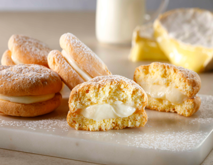 北海道産小麦のブッセ生地でカマンベーチーズで仕立てたチーズクリームをサンドしました。ブッセのやわらかく香ばしい食感とカマンベールチーズのクリーミーで濃厚な味わいが魅力の逸品です。