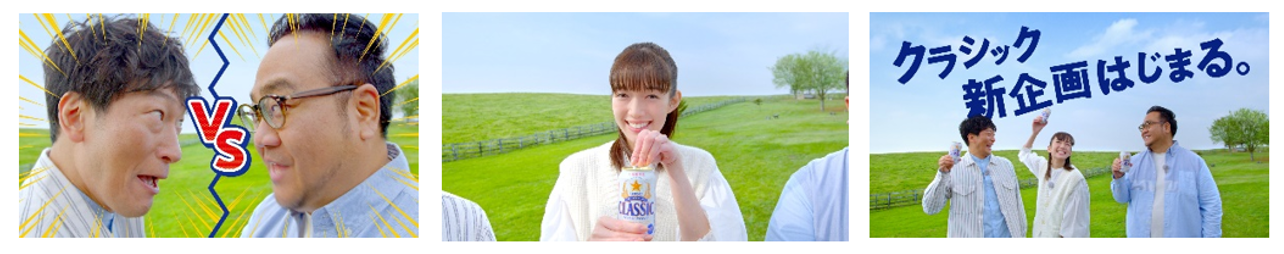 2月14日から放映のシリーズ第一弾「新企画はじまる」篇では、これからの「北海道のしあわせ見つけ隊」活動の幕開けとして、北海道限定の「サッポロ クラシック」を飲んで幸せを噛みしめる3人を描いています。第二弾以降もさまざまな「北海道ならではの幸せ」を見つけていきますので、同シリーズにぜひご注目ください。