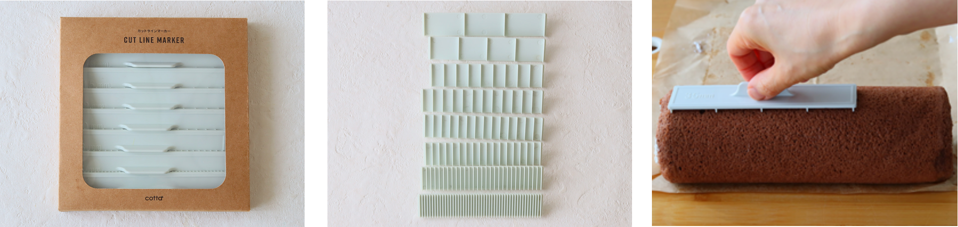 「ディアマンクッキー型」は、筒の中にクッキー生地を入れるだけで誰でもきれいな丸型クッキーを作ることができます。一方、「カットラインマーカー」は同一の厚さでカットできるため、均等の厚みがポイントのディアマンクッキーはもちろん、ケーキのカットや模様付け等、様々なシーンで大活躍。お菓子作りが好きな方に、ぜひ持っておいていただきたいアイテムです。