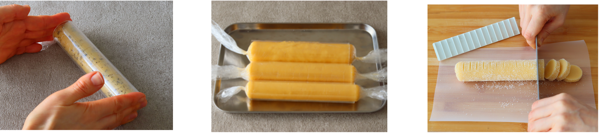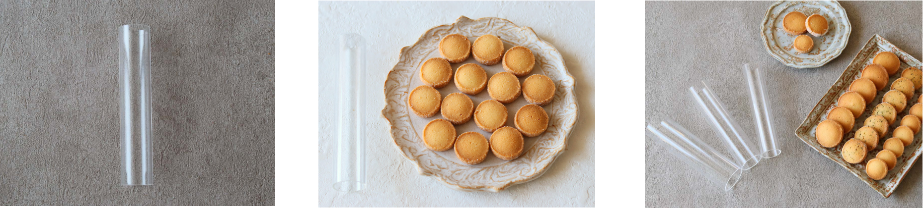 30・35・40mmの3サイズ展開。生地をキレイな棒状に伸ばせないという方や、冷やしている間に底がつぶれてしまうという経験のある方にぜひおすすめしたいアイテムです。