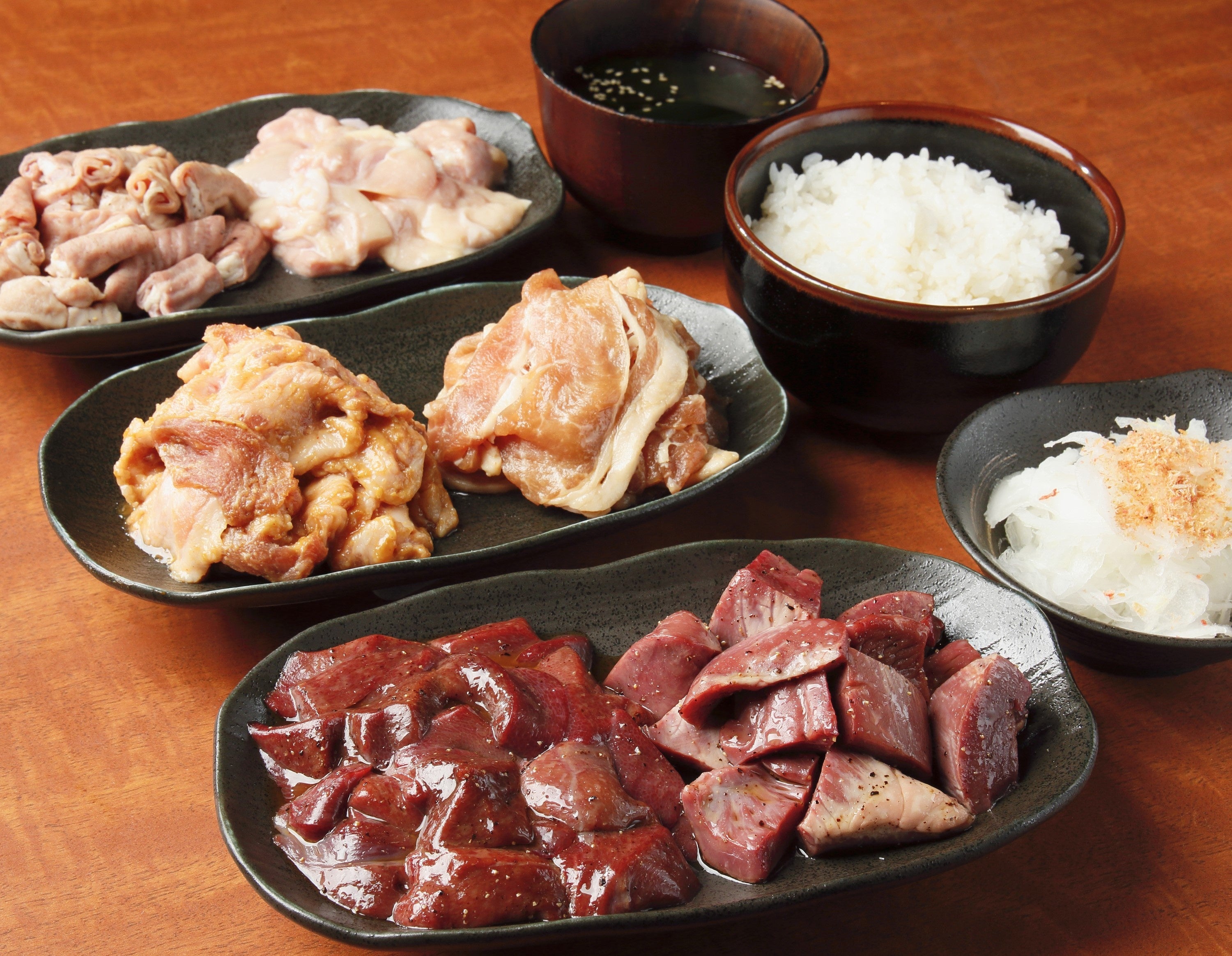 この度のリニューアルでは通常のセット(A・B・C)を選んでいただいた後、おかわりから選べる麹鶏に加え鮮度抜群の豚タン、プルプルホルモンが新たに登場!さらに今までは追加注文となっていた豆もやし・キムチ・わかめナムルといったサイドメニューも食べ放題に含まれております。もちろんライス・スープ・オニオンサラダも全てセットに含まれておりますので、時間内で何度でもおかわりして頂く事が出来ます!