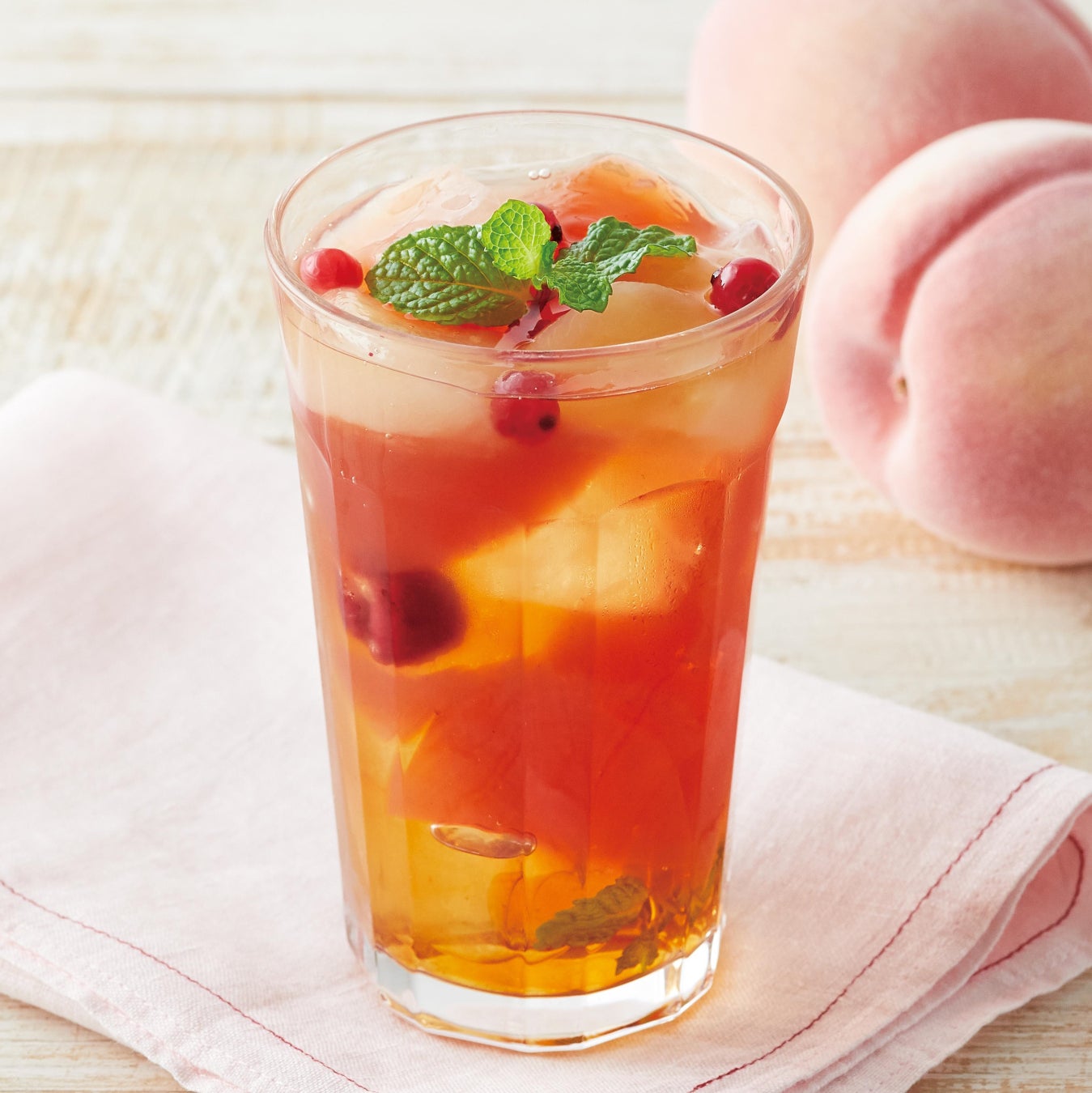 ピーチアールグレイのゼリーに、白桃、レッドカラント、ラズベリーを合わせたジュレッティー。