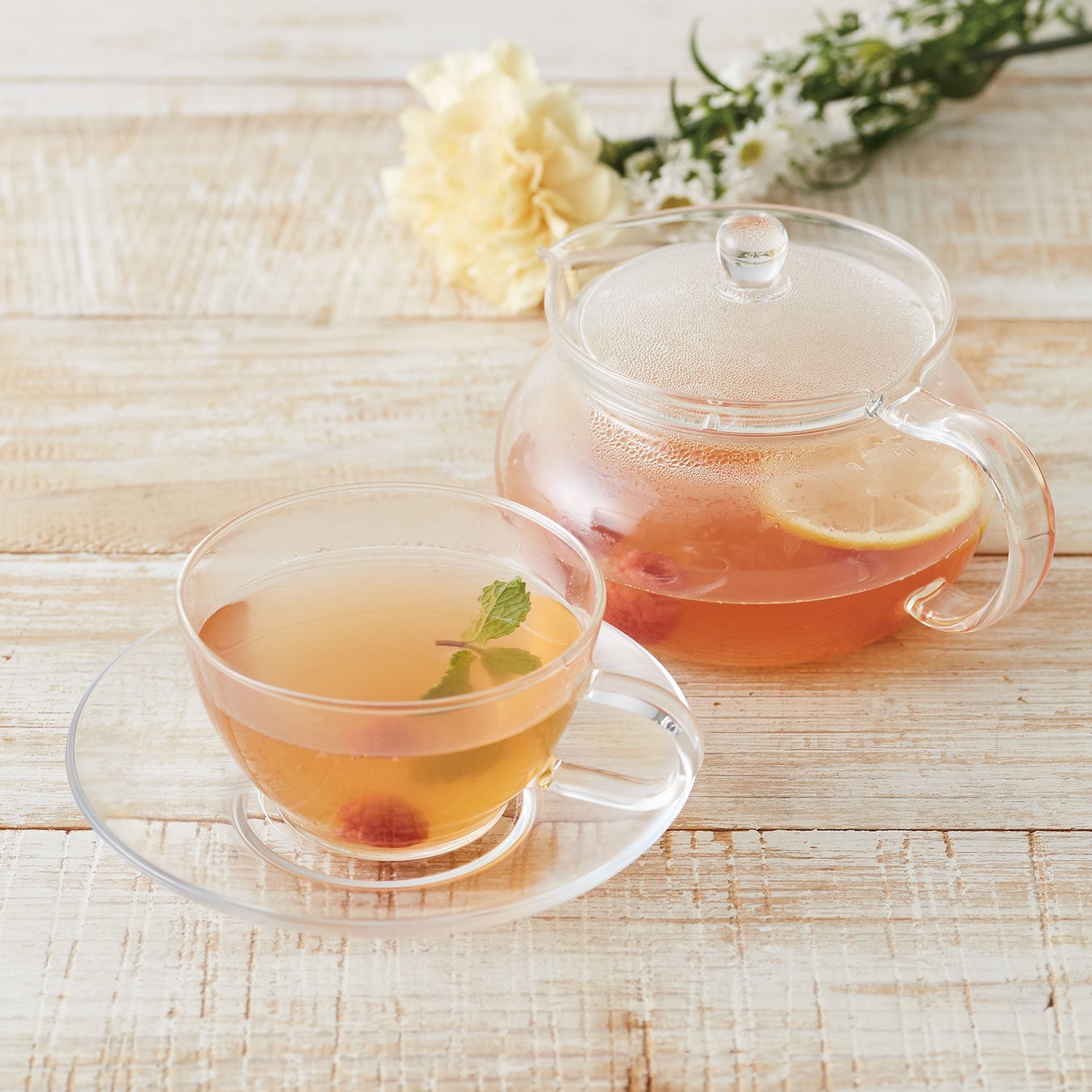 華やかな香りのフランボワーズジャスミンティーとレモネードソースを合わせて。