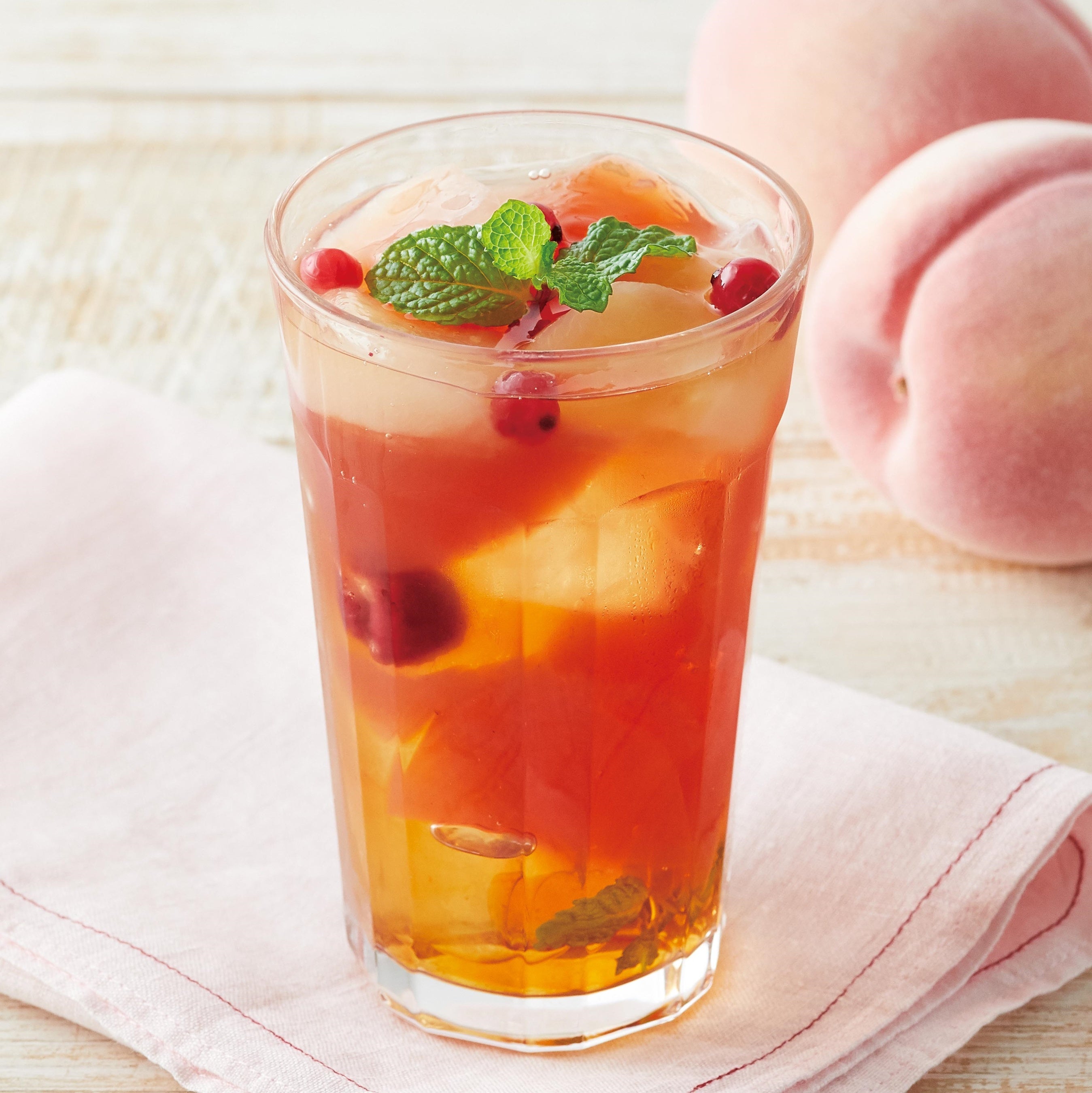 ピーチアールグレイのゼリーに、白桃、レッドカラント、ラズベリーを合わせたジュレッティー。