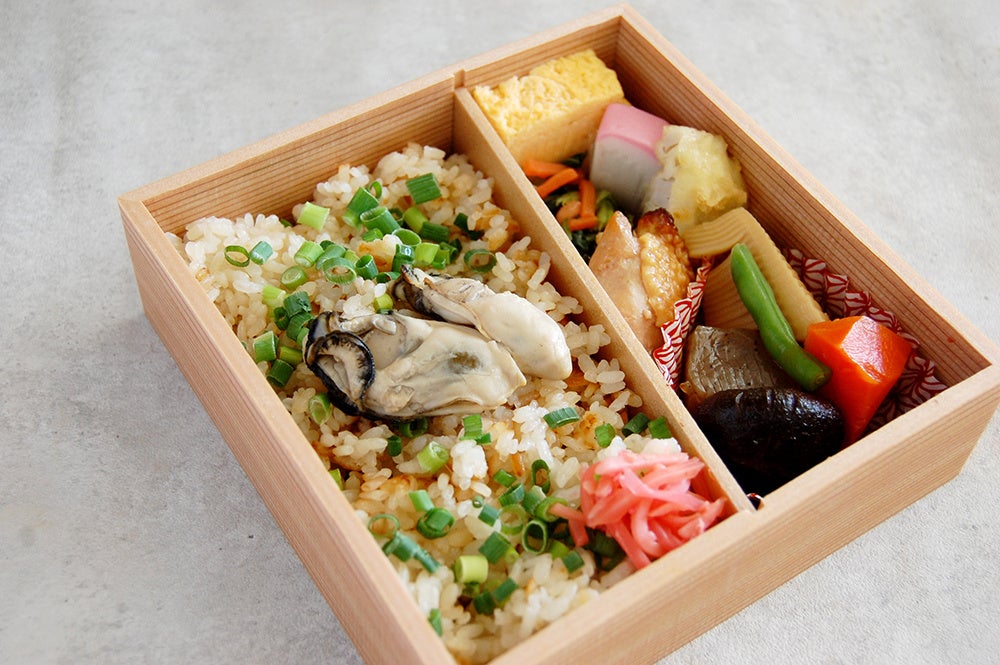 今が旬の身が大きくプリッとした広島県産の牡蠣が贅沢に乗った炊き込みご飯に、野菜もしっかりと取れ、食べ応えのある一折に仕上げました。彩り豊かな優しい味わいをお楽しみください。