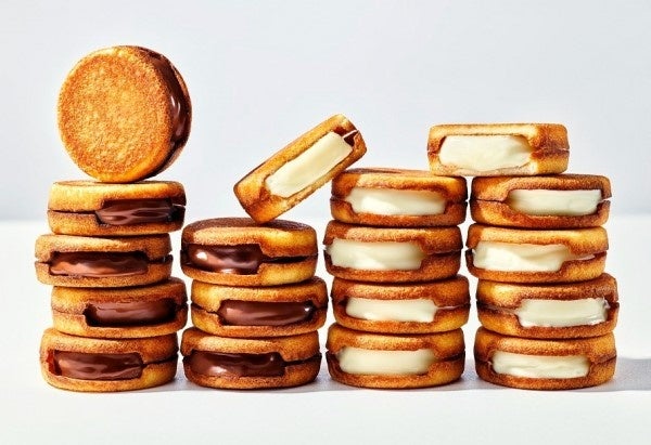 熱した鉄板で挟み焼きすることで生まれるラングドシャクッキーの香ばしいカリカリ感と、生チョコレートのなめらかさの両方を実現した、新しい食感の生チョコレートサンドクッキー。