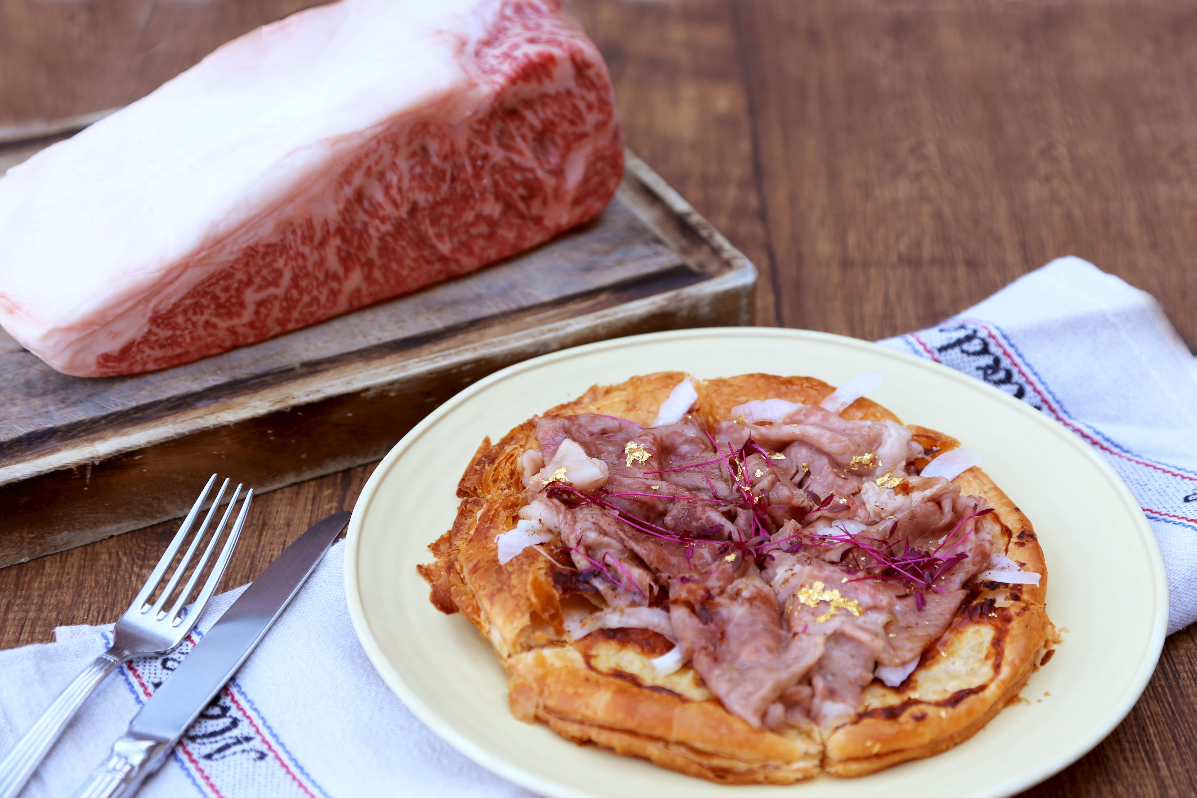 ランチには、人気のランチパイ食べ放題に松阪牛を使用した「炙り松阪牛パイ」が登場。きめ細かい脂の乗ったサーロイン部分をさっと炙って肉の甘みと旨みを凝縮させ、新玉葱とトリュフ醤油で味付けした期待を裏切らない一品です。炙り松阪牛パイを含む6品のパイが食べ放題のランチメニューは、パイウィーク限定でパイの日(3月14日)にちなんだ3,140円になります。