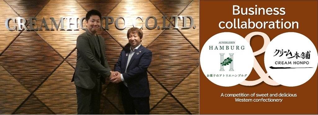 ソレイユホールディングスグループ傘下の有限会社ハンブルグ(大阪市淀川区/代表取締役 甲斐正訓)は、株式会社CREAM HONPO(堺市堺区/代表取締役 吉野 繁)の傘下にある スイーツ専門店 クリーム本舗 とスイーツ事業の 分野で、新たな価値の創出を目的とする業務提携を結んだ。