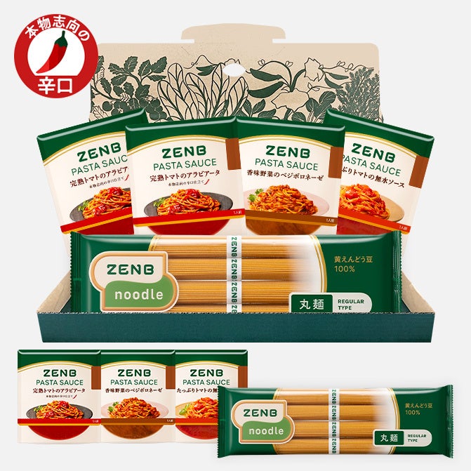 フレッシュな風味の完熟トマトをベースに、厳選した2種の唐辛子の辛みと旨みを効かせました。じっくり炒めることで引き出したにんにくの旨みがクセになる味わいのアラビアータが楽しめます。プラントベース&グルテンフリー、添加物にも頼らない味づくりを実現しており、低糖質でいつものパスタソースよりカロリー42%オフ※1のカラダにもやさしいパスタソースです。レンジで1分弱で手軽に調理でき、黄えんどう豆100%のグルテンフリー麺「ZENBヌードル」との相性も抜群でカロリーは合わせて400kcal以下です。