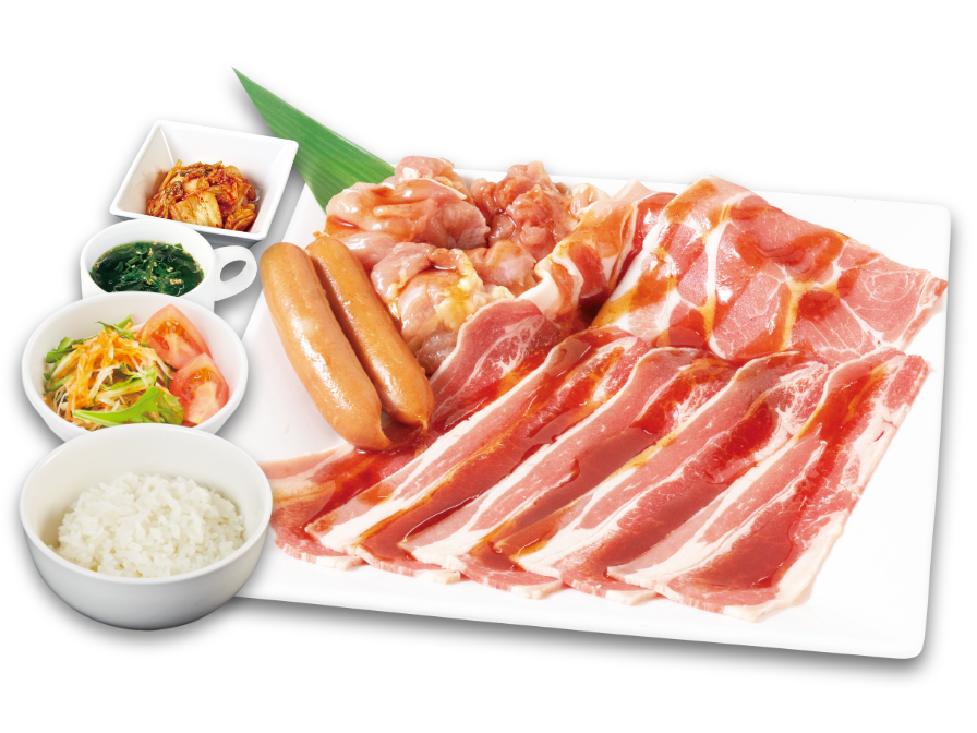 炙り焼きカルビ+豚肩ロース+鶏もも+ウインナー