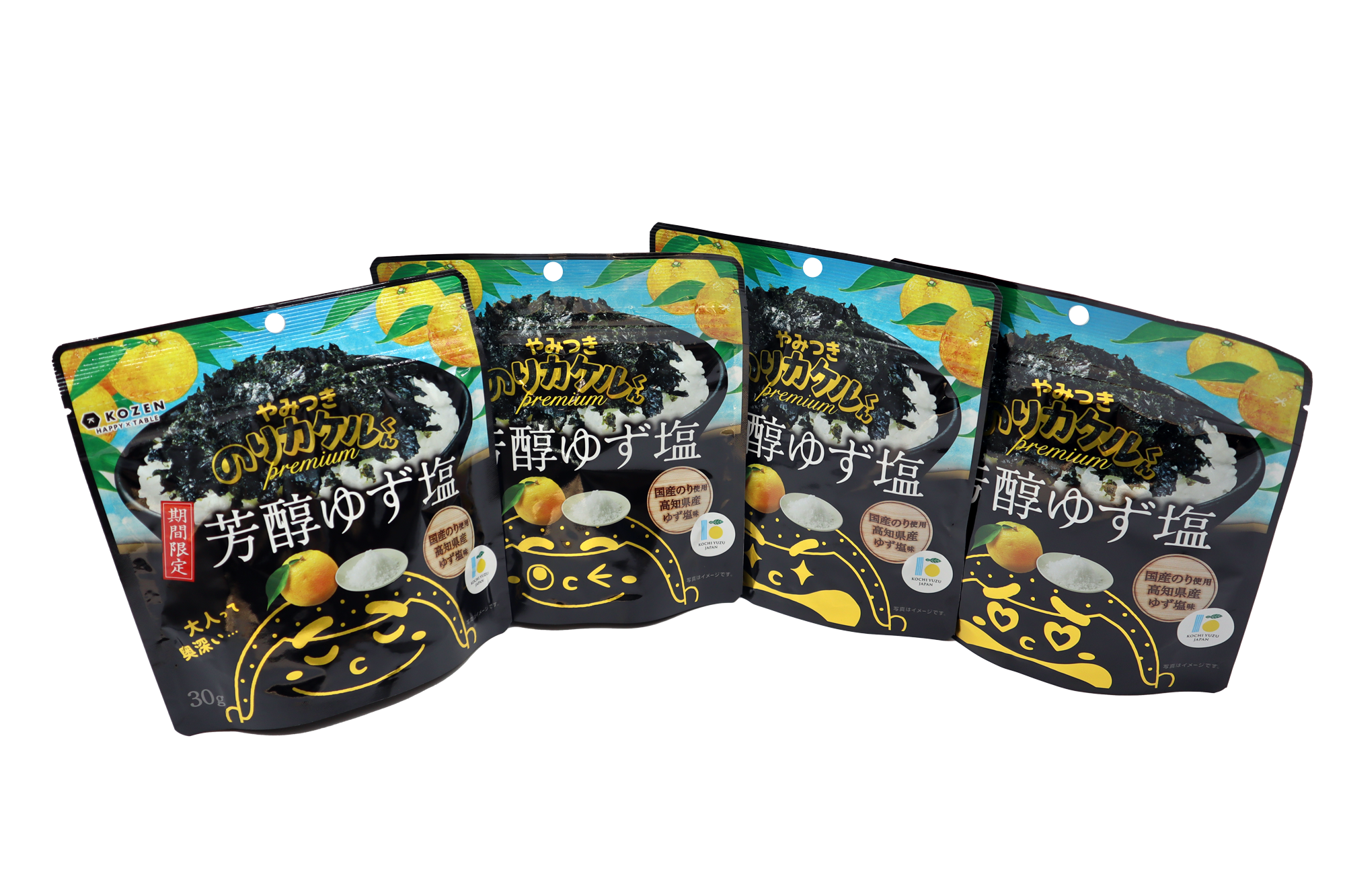 『お家で手軽に大人のプチ贅沢を』をコンセプトに立ち上げたpremiumシリーズ第4弾は、国産の原料を使用し、高知県産ゆずを使用した塩味の海苔フレーク商品です。