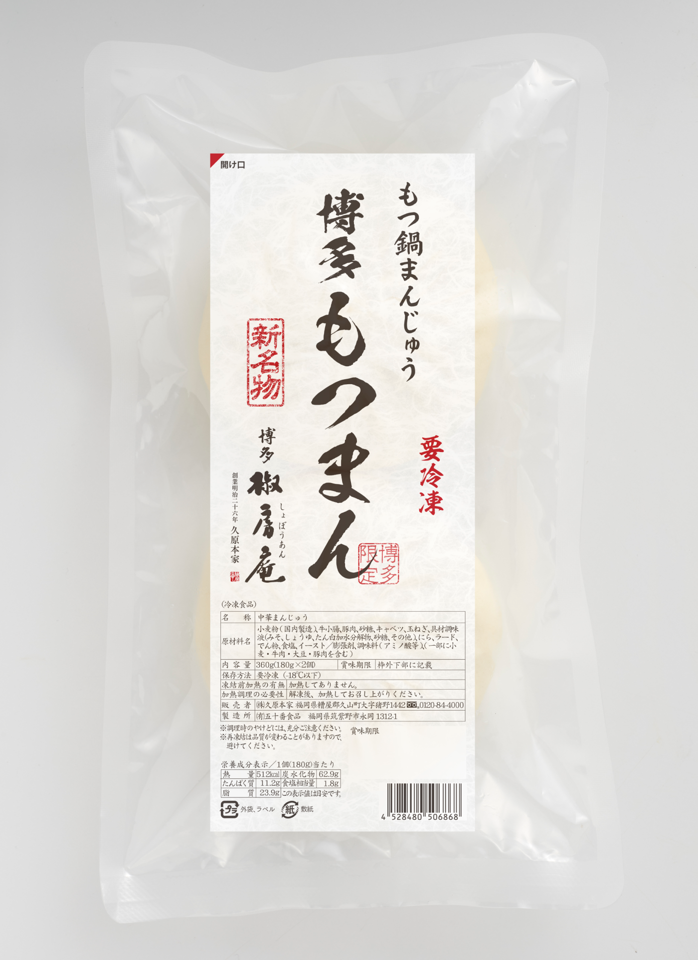 『博多もつまん』は、約5年間の開発期間を経て2022年11月より久原本家 総本店にて限定発売。この度おかげさまで販売数が累計10,000個を達成したことを記念し、冷凍商品として通販で全国からお取り寄せできるようにいたしました。