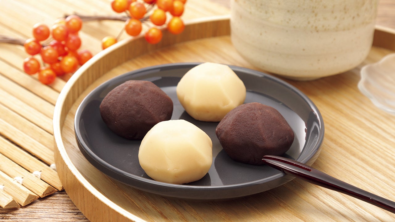 白あんとこしあんが楽しめる白黒の二色のあんころ餅です。白あんのあっさりとした上品な甘さと、小豆がほんのり香るこしあんの甘みの違いをお楽しみください。