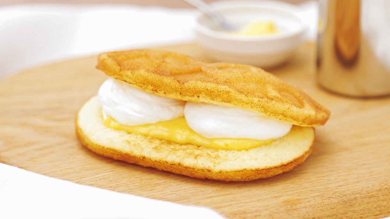 ふんわりとしたワッフルにカスタードクリームとたっぷりのホイップクリーム、2種類のクリームをサンドしました。