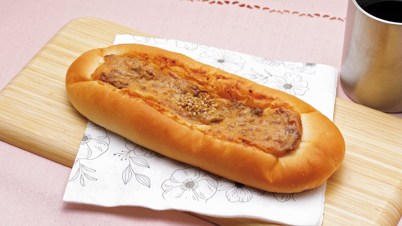 ふんわりとしたパンに、韓国料理でおなじみの「プルコギ」とマヨネーズを絞り、中央に白ごまをトッピングしました。甘辛の味付けが食欲をそそります。