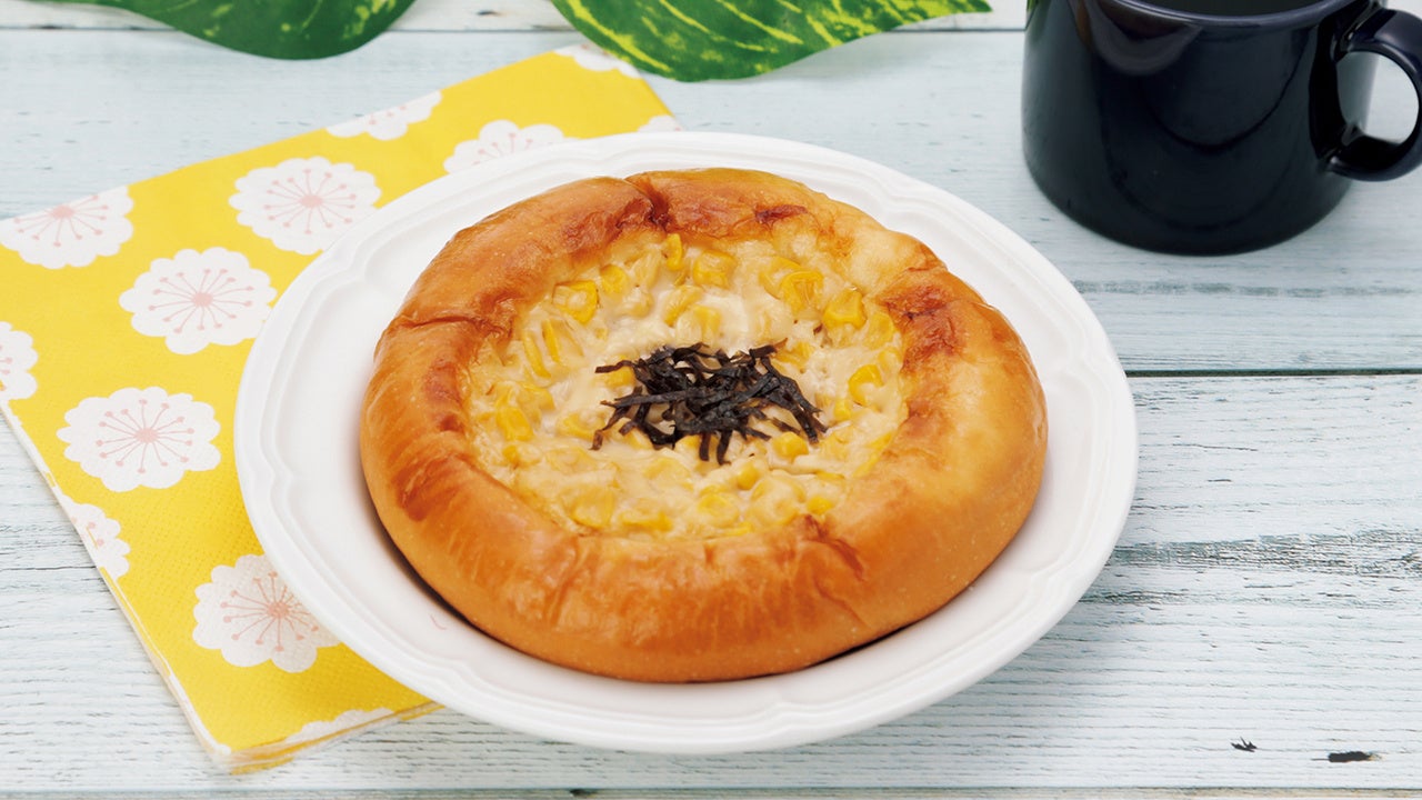 ふんわりとしたパンに、醤油で和風仕立てに味付けしたコーンマヨネーズを絞り、刻みのりをトッピングしました。醤油の香ばしさがアクセントになっています。
