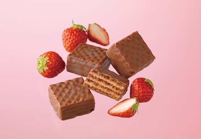 さくさくとした軽い食感のウエハースを4層に重ね、やさしい甘さのいちごクリームをサンド。仕上げにすっきりとした甘さのミルクチョコレートでコーティングしました。