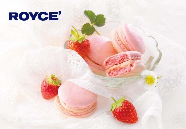 ストロベリー風味のマカロン生地に、ストロベリーにチーズの味わいを加えたクリームをサンド。片面にはホワイトチョコレートをコーティング。ストロベリーとチーズの風味が甘くさわやかに香る、甘酸っぱい春を感じるマカロンです。