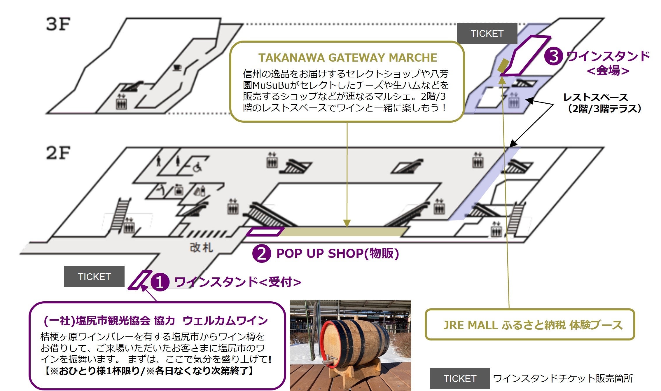 ■高輪ゲートウェイ駅「信州松本平のクラフトワインLOVER」イベントMAP ※会場はすべて改札外