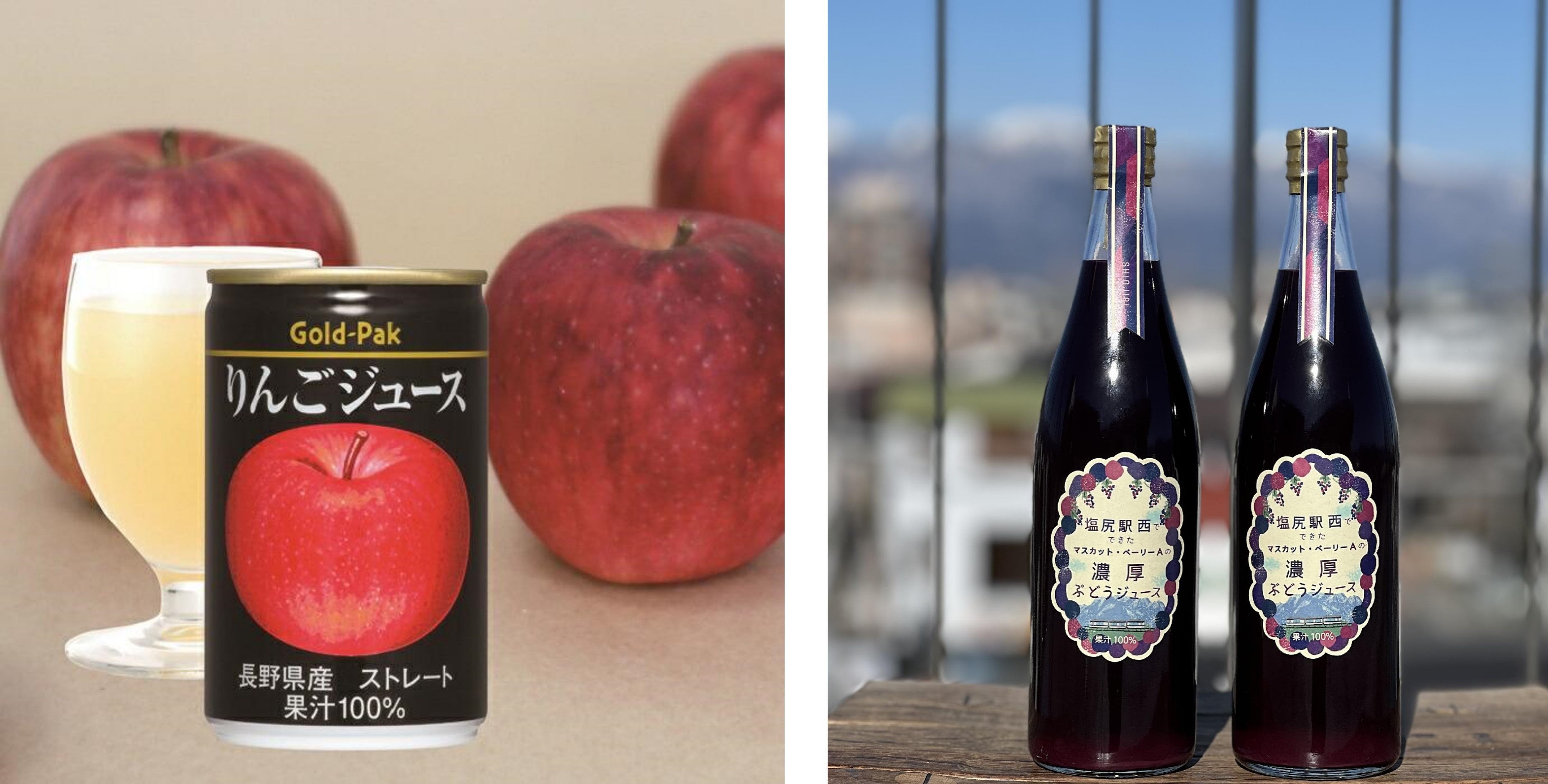 ・塩尻市 : おやき(各務製粉)・ぶどうジュース(リカーハウスながはら)