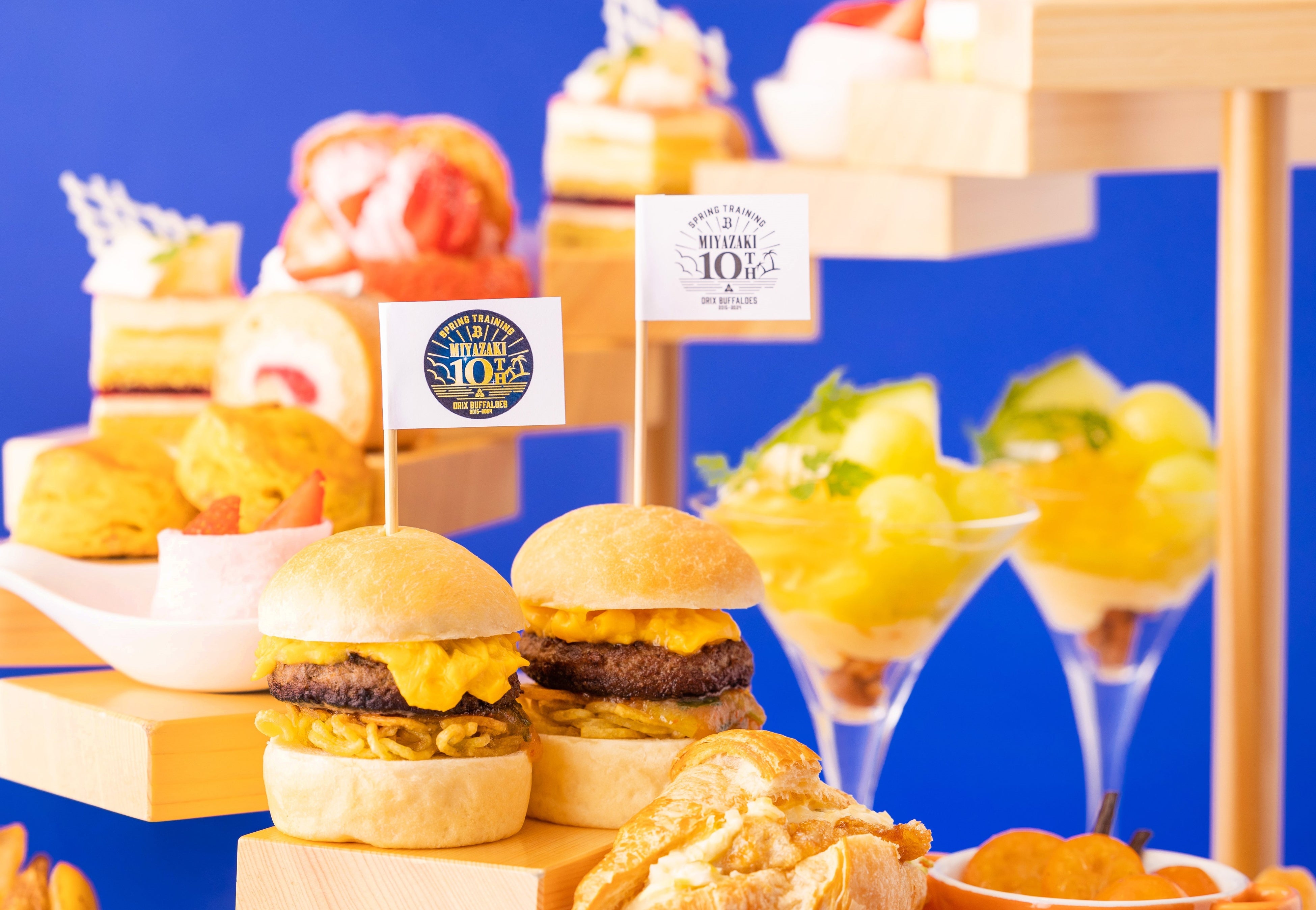 「バファローズ宮崎キャンプ10周年記念コラボアフタヌーンティー」または宮崎県産の食材を使用した