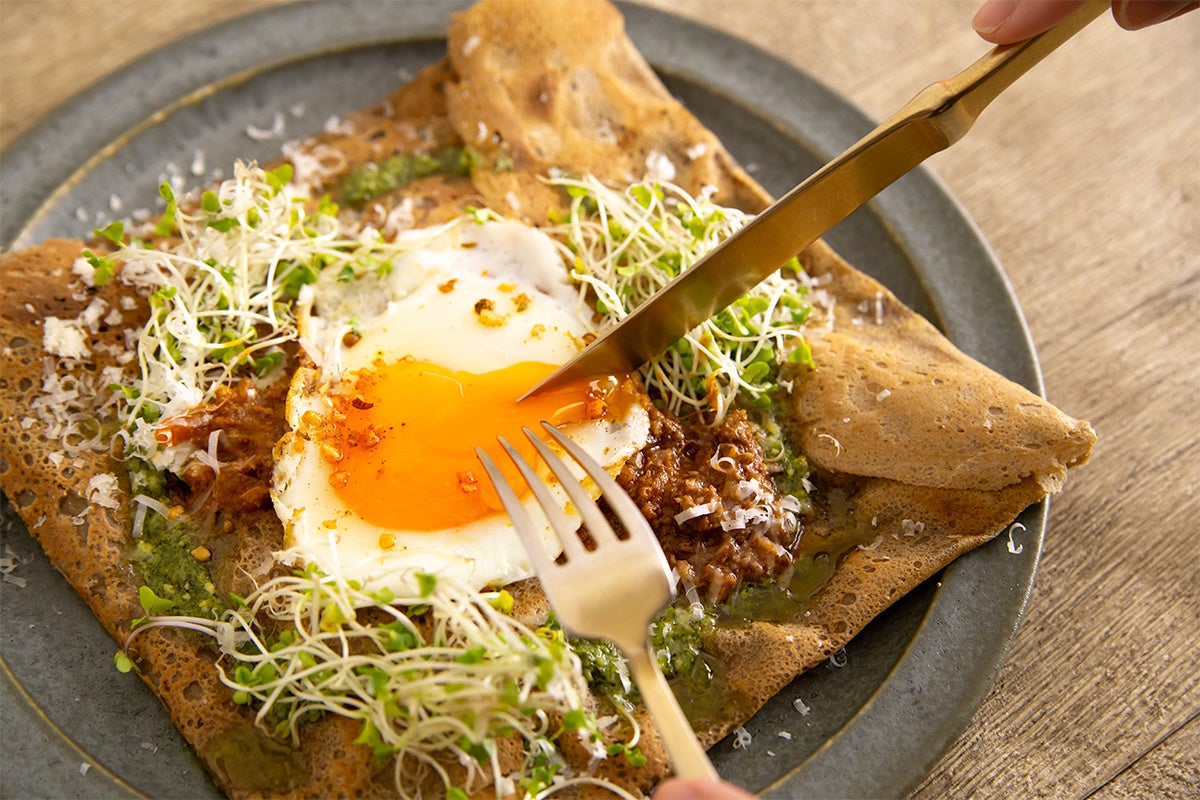 小麦に比べてヘルシーで栄養価も高いので、フランスで日常的に愛されるお食事クレープです。