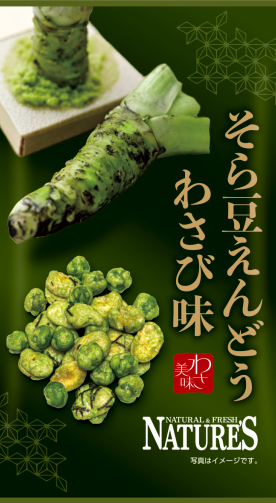 商品特徴:ぴりっと辛いわさび味のそら豆とえんどう豆をミックスしました