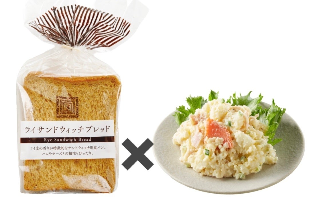 さわやかな香りのキャラウェイシードが入ったライ麦パンと、スモークハムとホクホク食感のポテトサラダがベストマッチ。