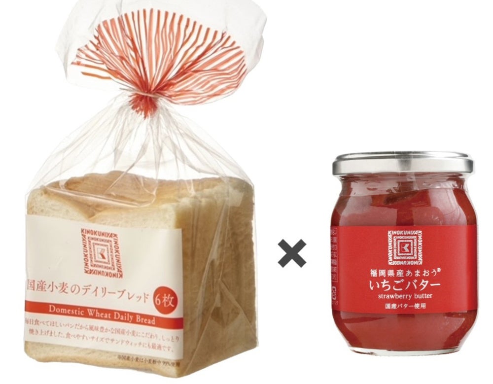 国産小麦の風味豊かな食パンに、ゴロッと入った苺の酸味が引き立ついちごバターをサンド。濃厚なのに後味がすっきりしているのでたっぷり塗って、苺の食感をご堪能ください。