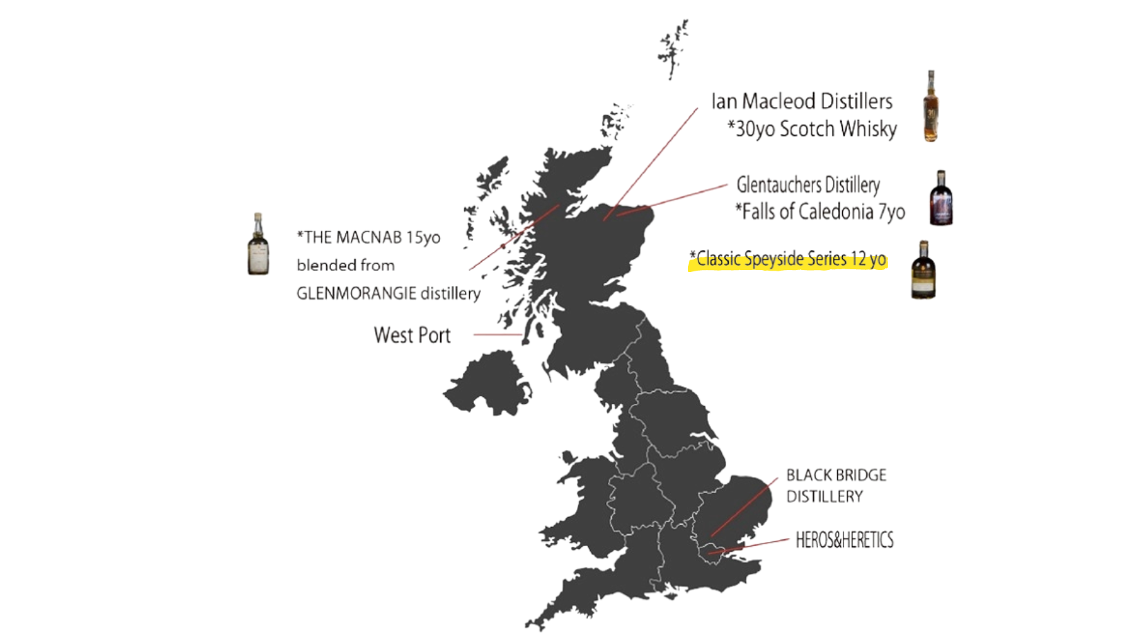 当社と提携するHeroes & Heretics Ltdは、イギリス国内に独自の流通網を持つ英国のボトラーズ会社です。このH&H社のブランドを冠した商品が「CLASSIC SPEYSIDE SERIES 12YO」です。