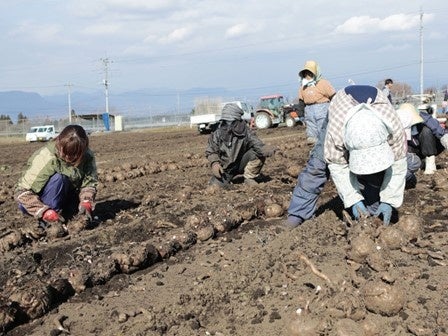 春に植えたものを秋に収穫しますが、低温に弱いこんにゃく芋は風通しがよく気温が低くなりすぎない場所に保存しなければなりません。そしてこの作業を3年ほど繰り返し、収穫したこんにゃく芋がこんにゃくの原料となります。