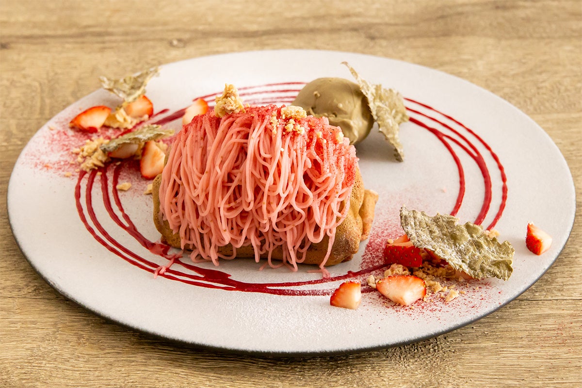 トップにはクリームチーズを合わせたいちご餡を重ね、モンブラン仕立てに。