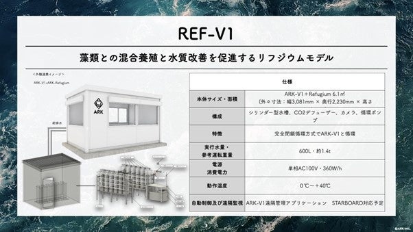 この度、藻類の養殖が可能なリフジウム型養殖装置「REF-V1」(以下、REF-V1)の一般販売を2024年2月19日(月)から開始致します。ARKは、国立大学法人琉球大学との共同研究成果を踏まえ、ARK-V1とREF-V1でハタ類(ヤイトハタ、クエ等)と海藻類(クビレズタ等)を複合養殖する手法(IMTA:Integrated Multi-Trophic Aquaculture、多栄養段階統合養殖技術、以下、IMTA*5)を確立しました。REF-V1はARK-V1と直結して運用することができます。ARK製品群によるIMTAの実現は、これまで課題とされていた陸上養殖事業の採算性の向上と、養殖密度を高めるための装置の濾過能力強化を同時に解決する有効な手段となります。