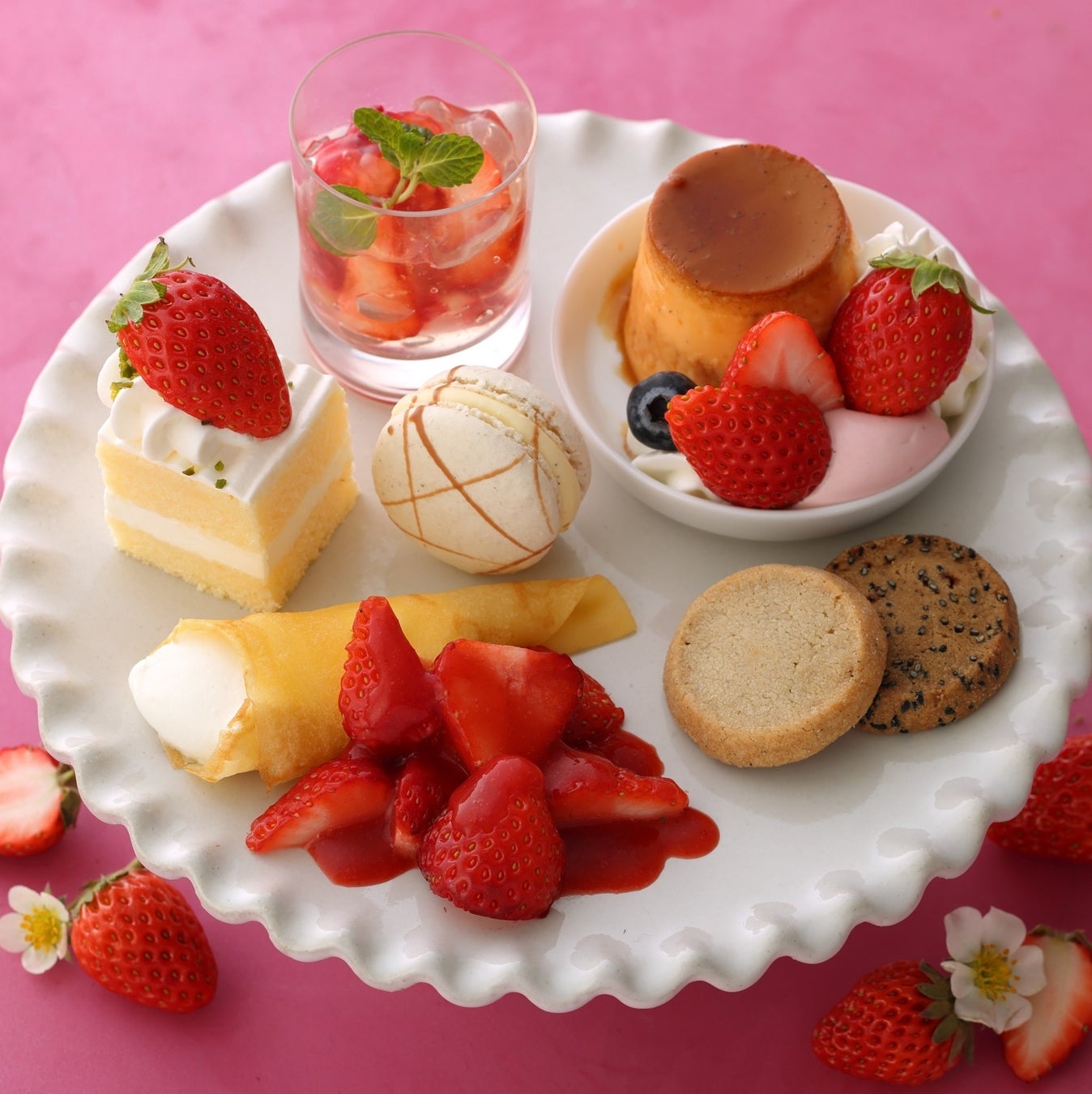 なめらかなパンナコッタにフレッシュ苺をあわせた「苺とココナッツのパンナコッタ」や淡いピンク色の「苺のアイス」も新しくラインアップに加わり、見た目も味わいも春らしいアフタヌーンティーに仕上がっています。
