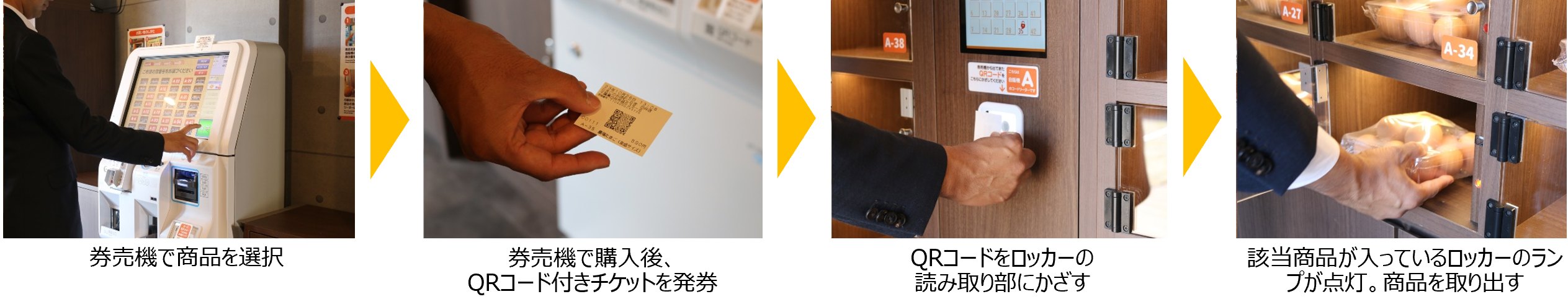 この無人店舗ソリューションは、券売機で商品の選択と支払を行い、QRコードを発券した後、それをロッカーにかざすと商品が受け取れるもので、現金決済はもちろん、キャッシュレス決済にも対応しています。