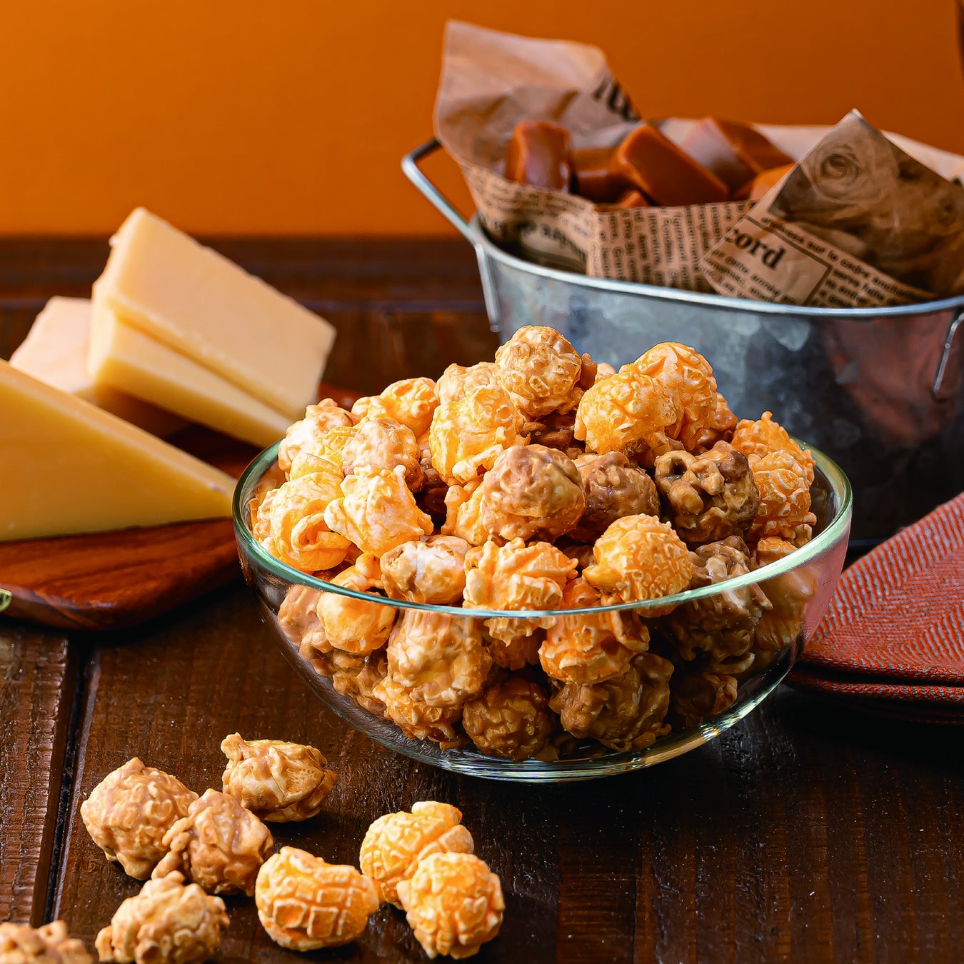 芳醇で濃厚なチーズの旨みと、たっぷりバターを使用した甘いキャラメライズポップコーンのリッチな甘みの組み合わせが、絶妙でやみつきになること間違いなしの商品です。