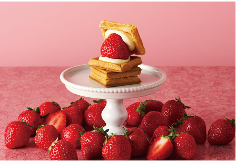 PRESS BUTTER SANDの“焼きたてシリーズ”から、旬のフレッシュな苺をサンドしたバターサンドが登場。パイ生地とクッキー生地の間に、オリジナルのバタークリームとフレッシュな苺をまるごと一粒サンドしました。サクサクのバタークッキーとパリパリのパイ生地、なめらかなバタークリームの食感や風味も楽しめる、期間限定のバターサンドです。