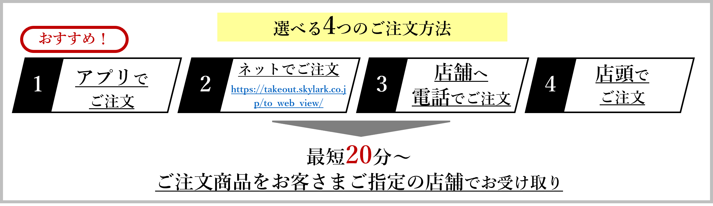 ・テイクアウト専用サイトURL : https://takeout.skylark.co.jp/to_web_view/