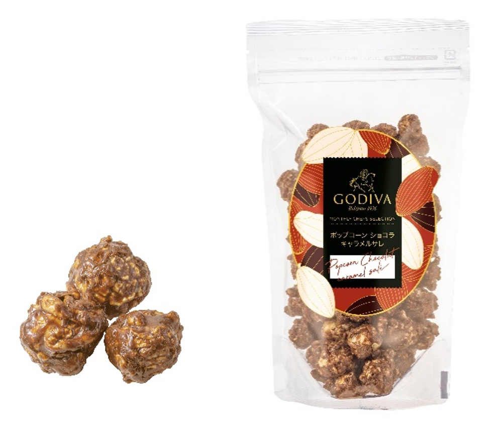 「ゴディバ マンスリー シェフズ セレクション」の新商品は、軽い食感のポップコーンに、香ばしいキャラメルとベルギー産のチョコレートを絡めた「ポップコーン ショコラ キャラメルサレ」を発売します。