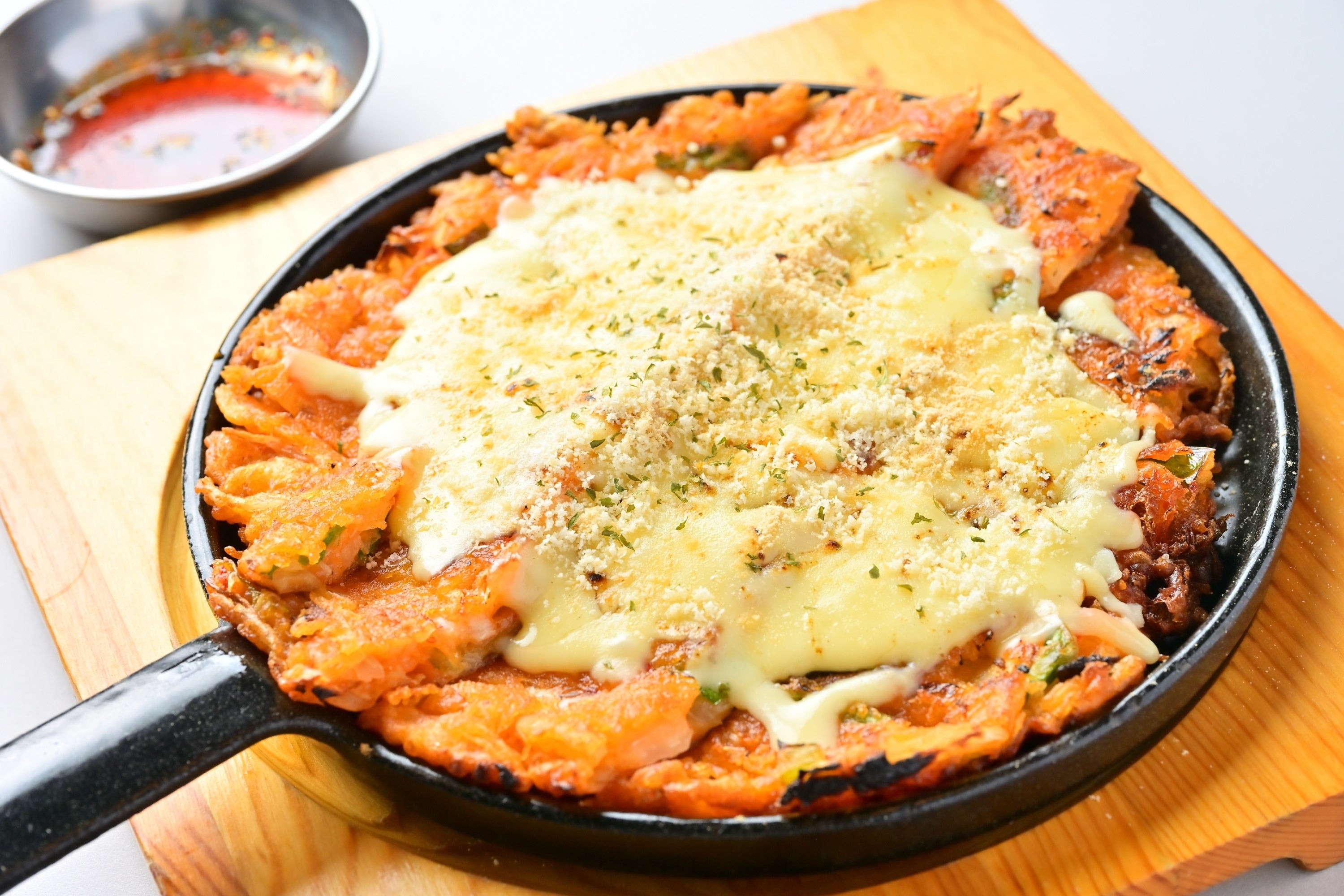 新しい韓国パジョン(チジミ)です。チーズトッピングで見た目もおいしい、