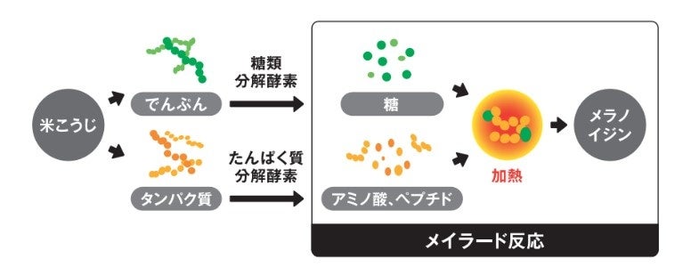 加熱乾燥*することによりメイラード反応進み、 コク味成分「メラノイジン」が生成されます。