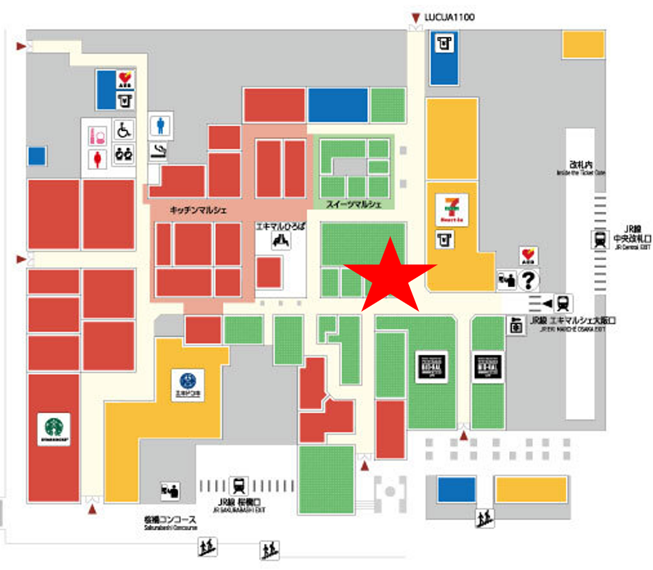 ・店舗場所 JR大阪駅桜橋口すぐ「エキマルシェ大阪」F08区画