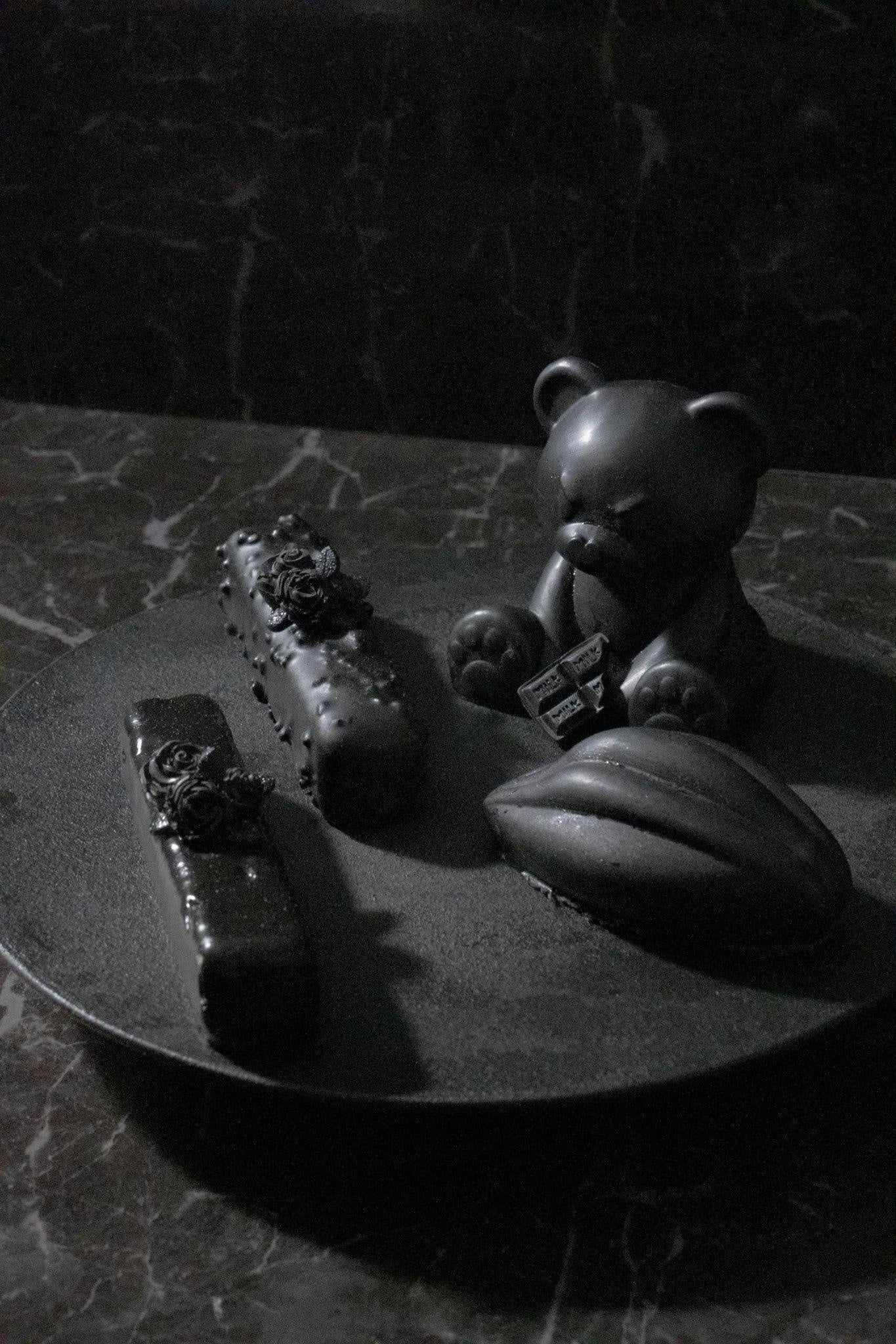 フランス産の高級ショコラとトンカ豆をたっぷり使い、それぞれが香り高い層になるよう仕上げた【BLVCK TEDDY】。キャラメルの香りを付けたショコラのムースは、なめらかで上品な味わいです。またカカオ70%の濃いショコラを使ったムースは、ほろ苦い風味が絶妙にマッチ。そしてトンカ豆を使ったブリュレも、飽きのこない美味しさを演出します。食べ進めるうち、気づいたら食べ終わってしまうような、親しみやすいケーキです。