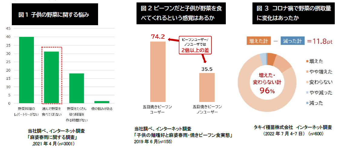 健康への意識が高まっている今、多くの方が「子供(家族)に野菜を摂ってもらいたい」と考えています。また、どうしたら子供が野菜を食べてくれるかは、いつの時代も調理をする人の大きな悩みのひとつです(図1)。