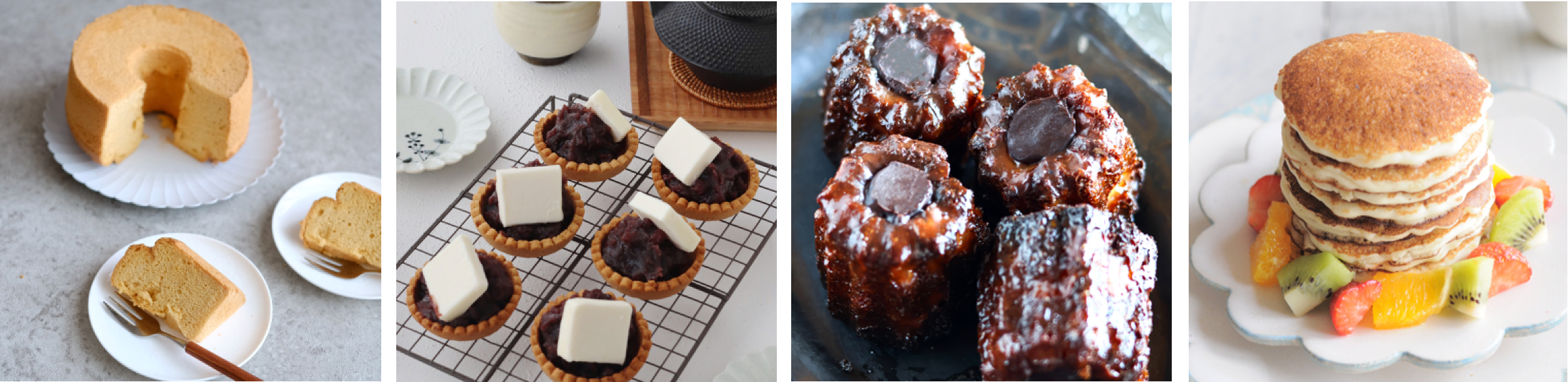 もちもちとした食感のイメージが強い米粉ですが、ふわふわやしっとり、ほろほろなど様々な食感が楽しめます。特設ページでは、台湾カステラやシフォンケーキ、タルトやカヌレなど、米粉の特徴ごとにレシピを紹介しています。